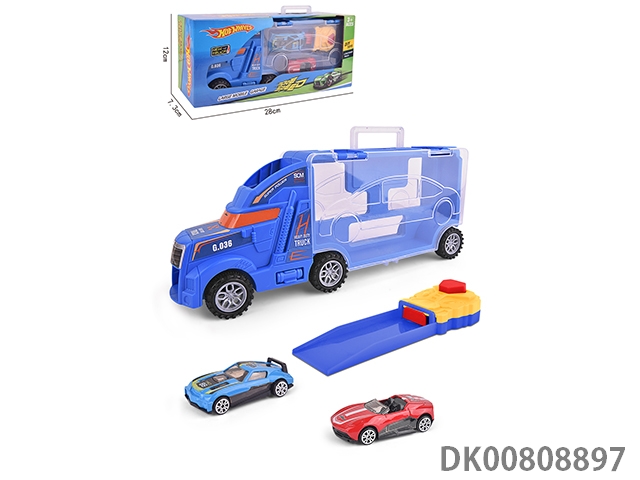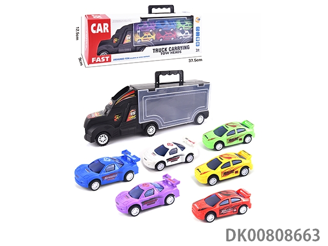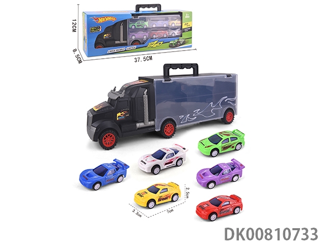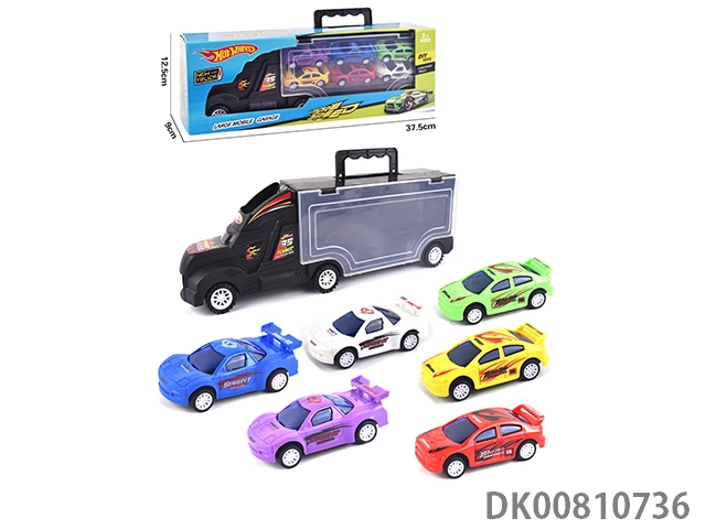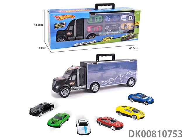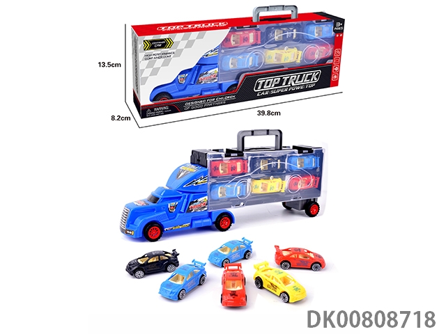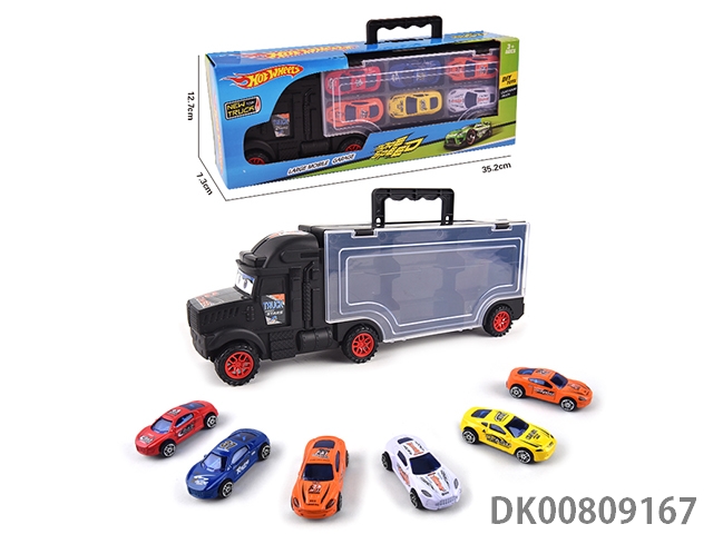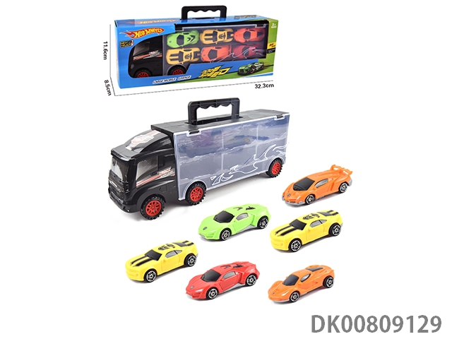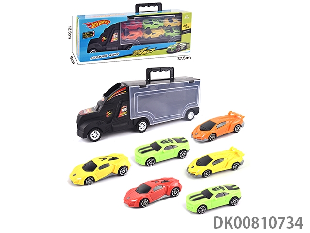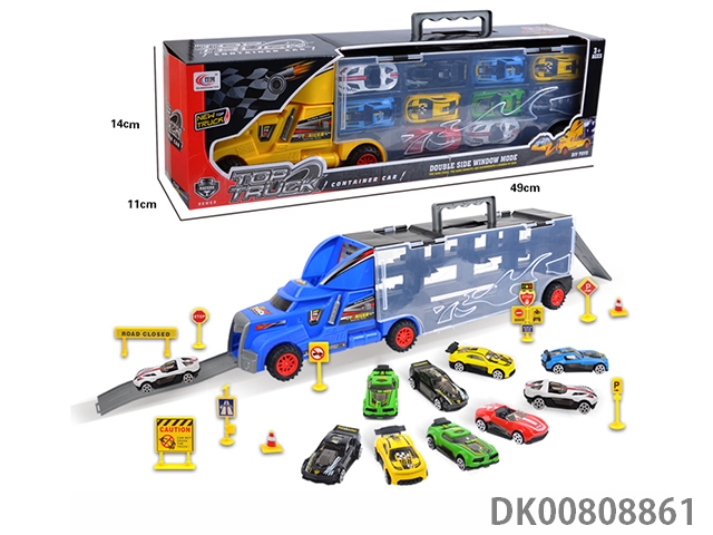 Portable gift box container trailer with 6 alloy racing cars (1 side)