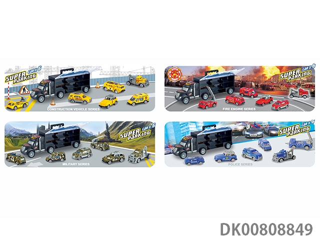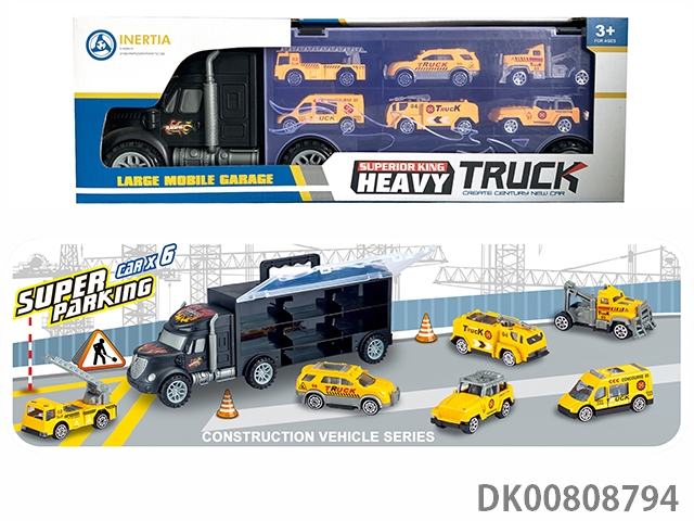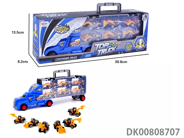Portable gift box container tractor with 6 sliding simulation engineering vehicles (1 side)