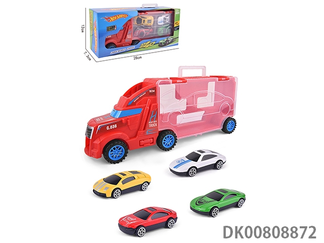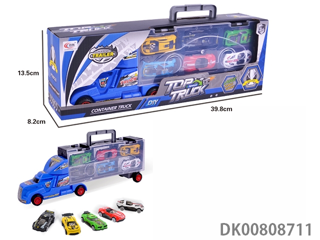 Portable gift box container sliding tractor with 4 sliding alloy sports cars