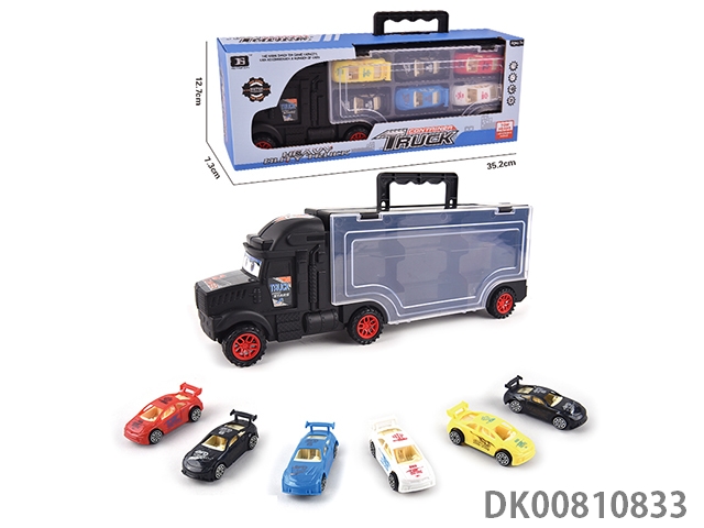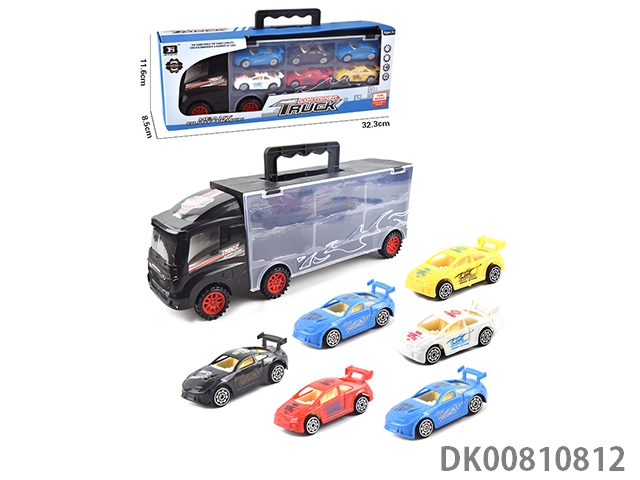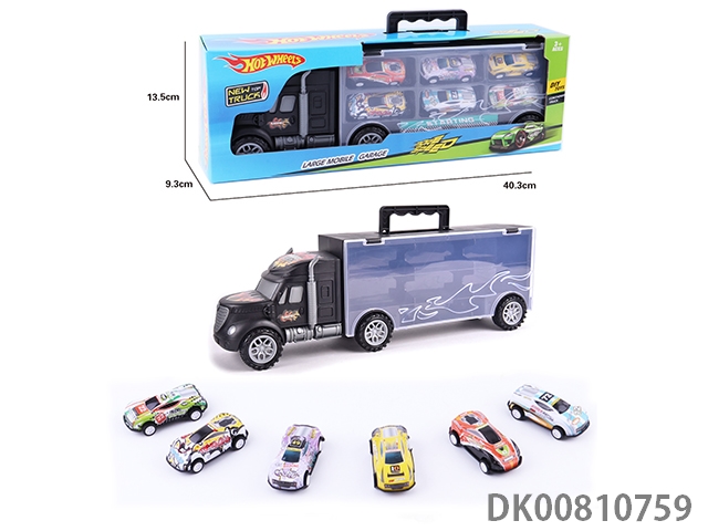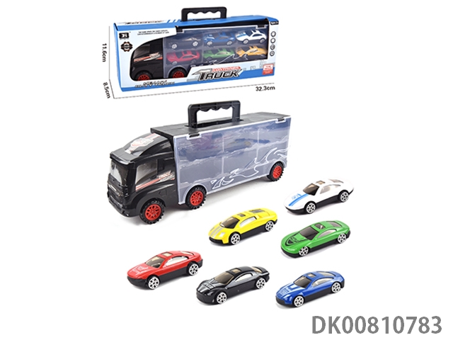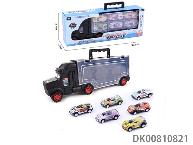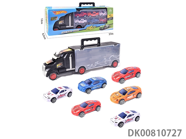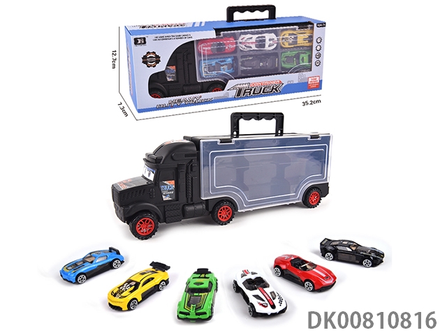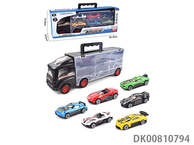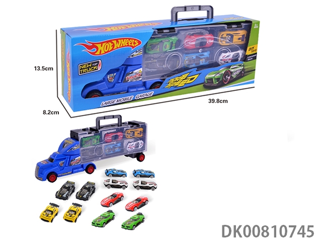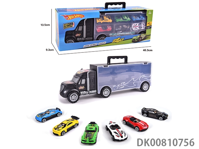 Portable gift box container trailer with 12 alloy racing cars (2 sides)