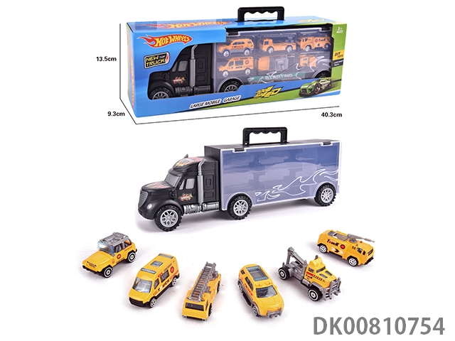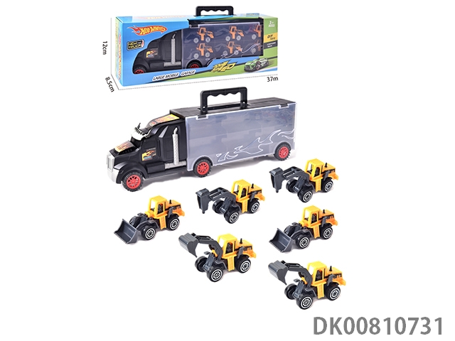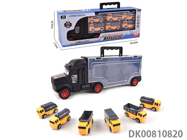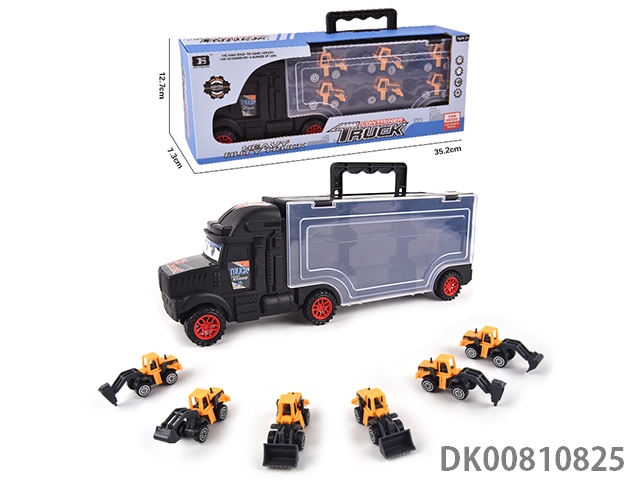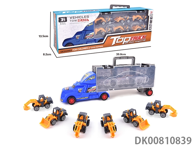 Portable gift box container sliding tractor with 6 sliding engineering vehicles (alloy)