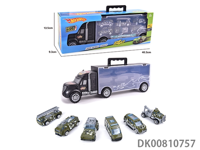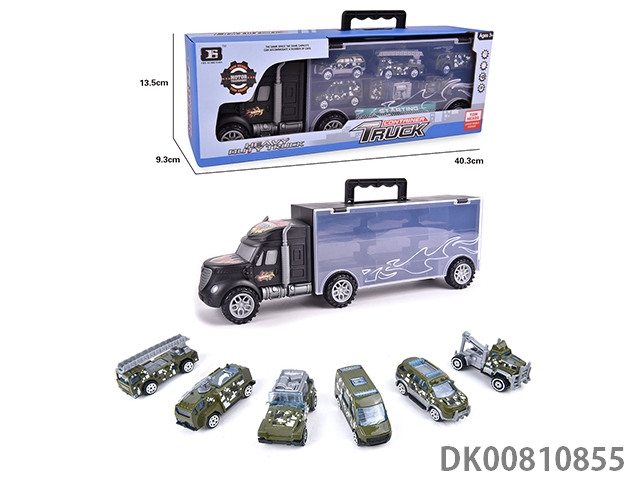 Portable gift box container sliding tractor with 6 sliding military vehicles (alloy)