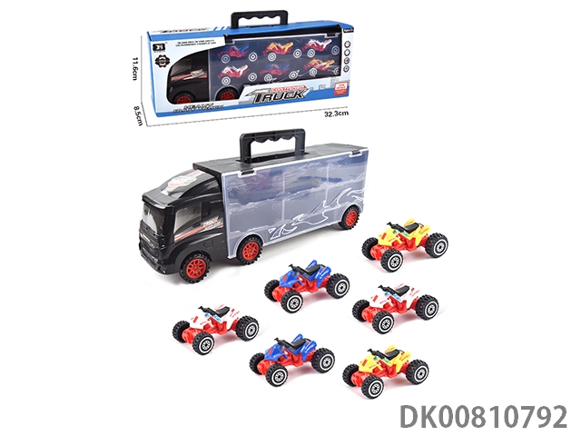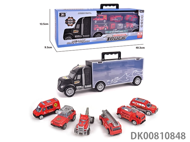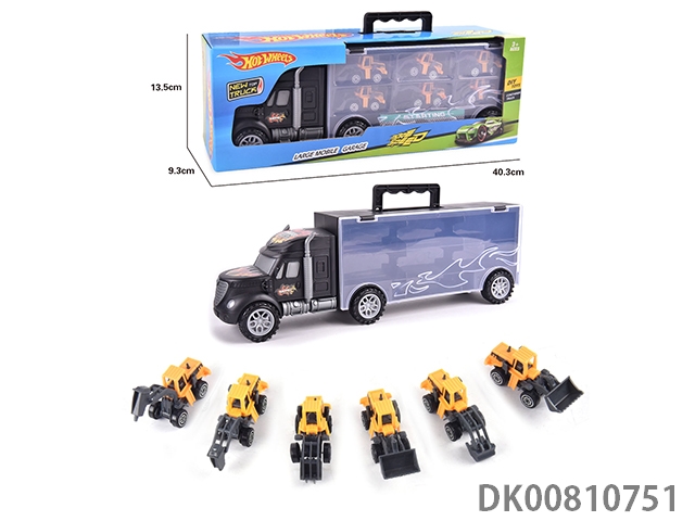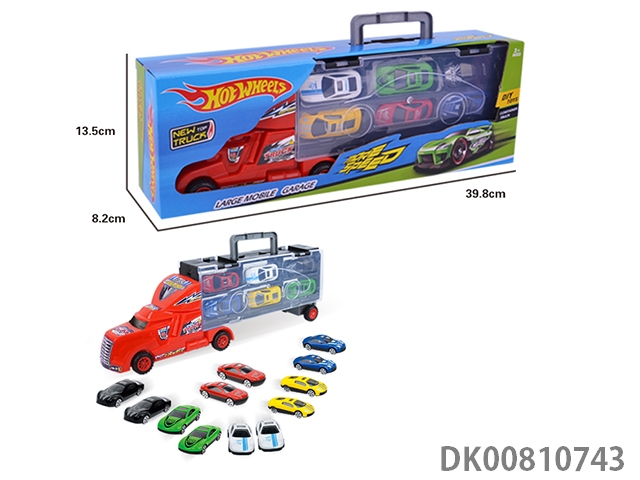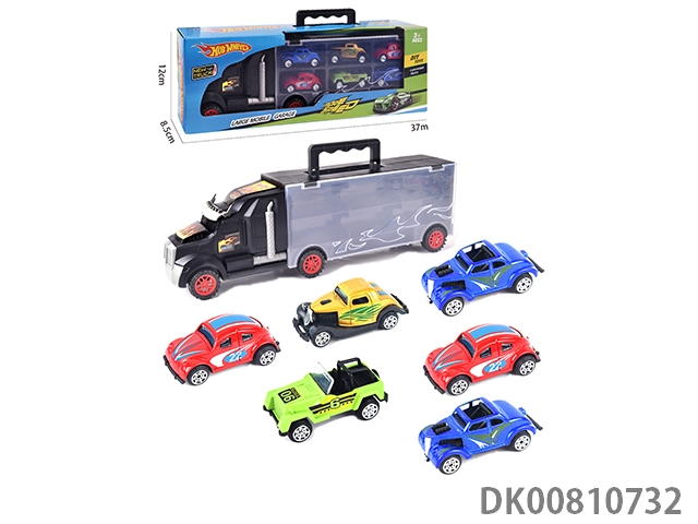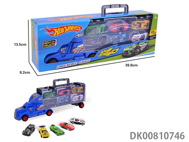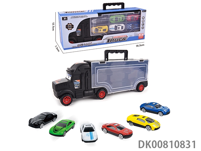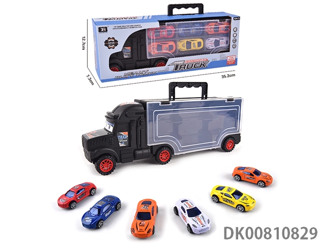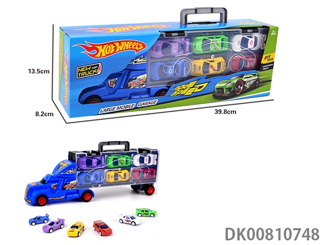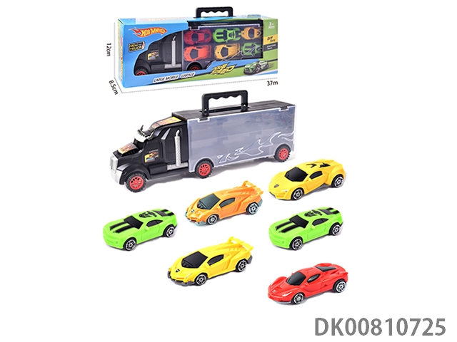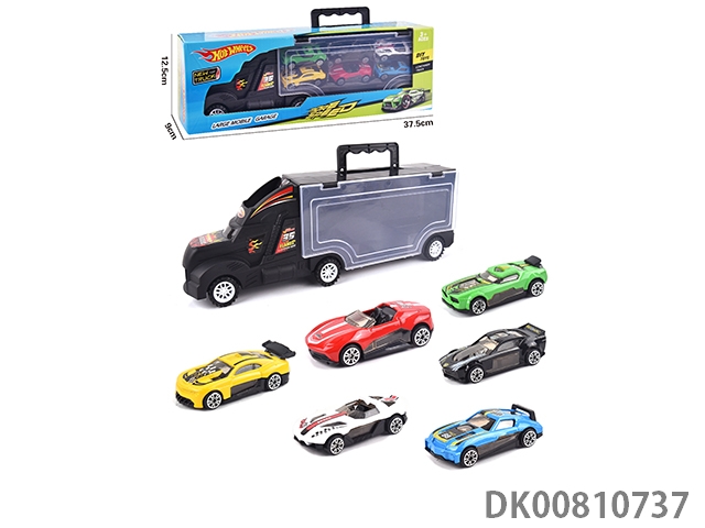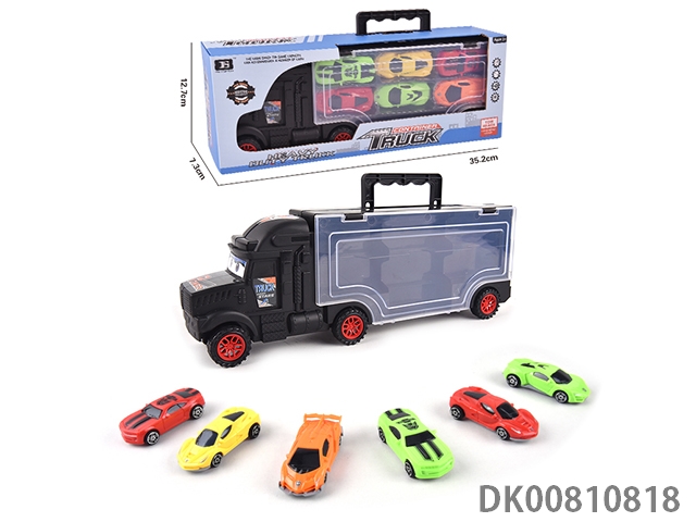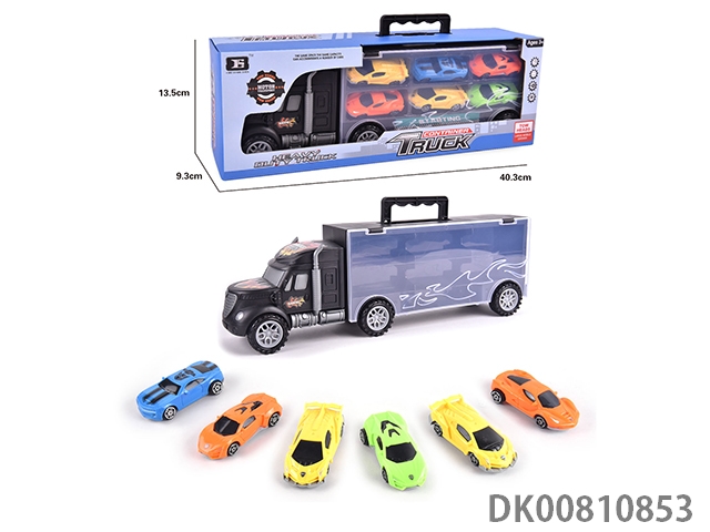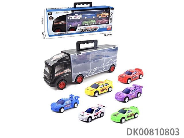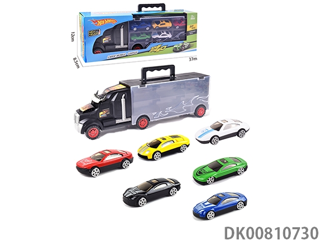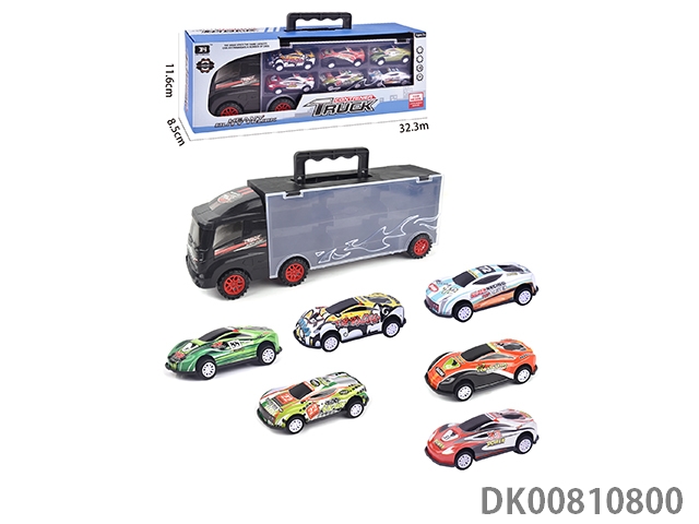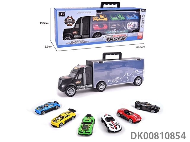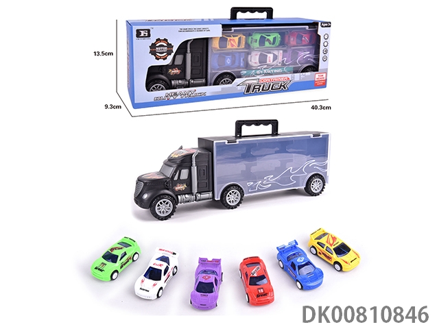Portable gift box container trailer with 6 alloy racing cars (1 side)