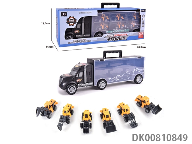 Portable gift box container sliding tractor with 6 sliding simulation alloy cars