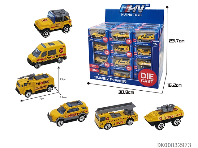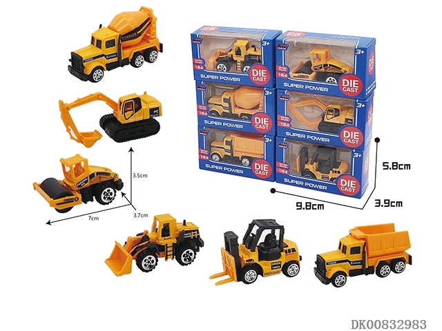 Engineering alloy car yellow 6 models, 48 pieces (sliding)