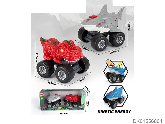 Skating shark and tyrannosaurus rex bigfoot (with lights and music) 2-pack