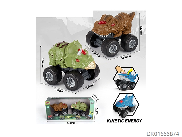 Sliding tyrannosaurus rex and triceratops bigfoot (with lights and music) 2-pack