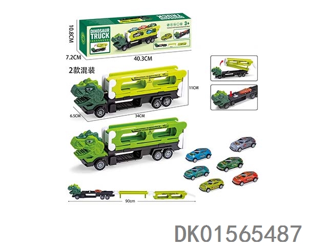Dinosaur container truck parking scene (equipped with 3 metal powered trucks, 15 road signs and barriers, and 1 diy sticker)