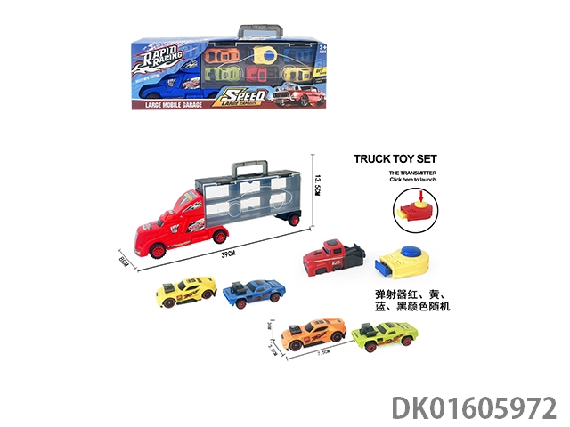 Handheld gift box sliding container truck with 4 sliding ab sports cars and 2 catapults