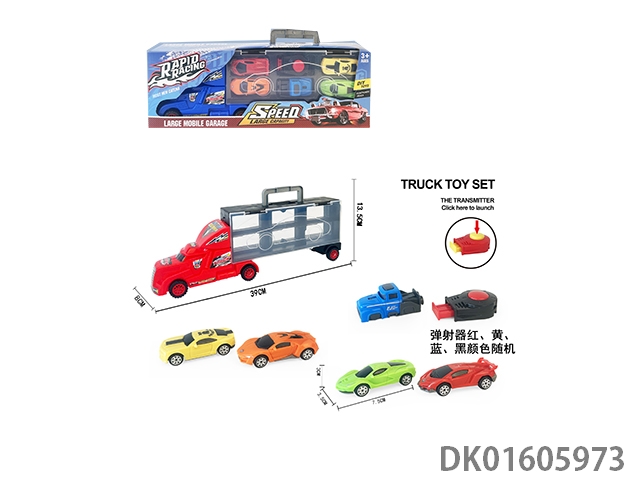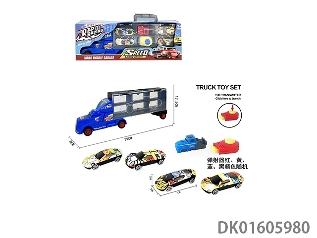 Handheld gift box sliding container truck with 4 sliding alloy sports cars and 2 catapults