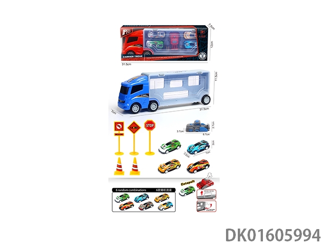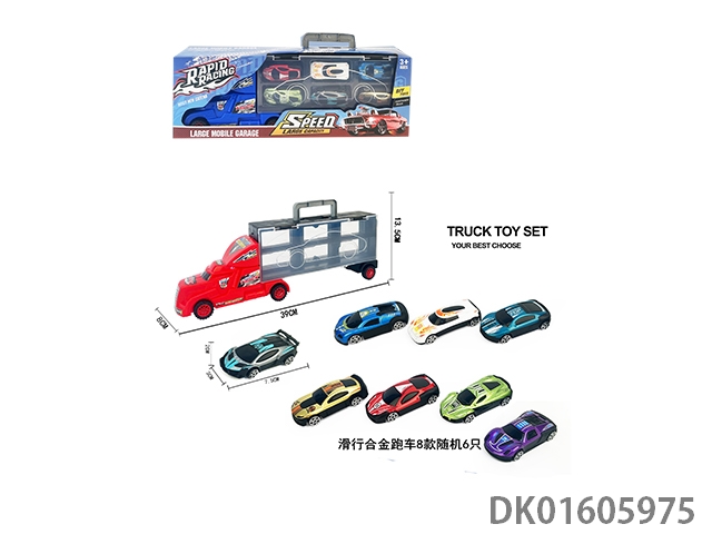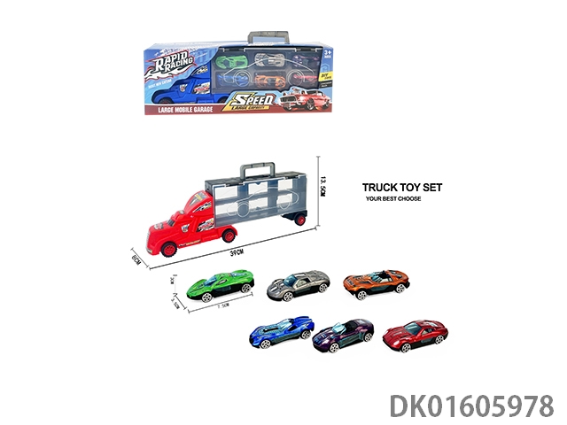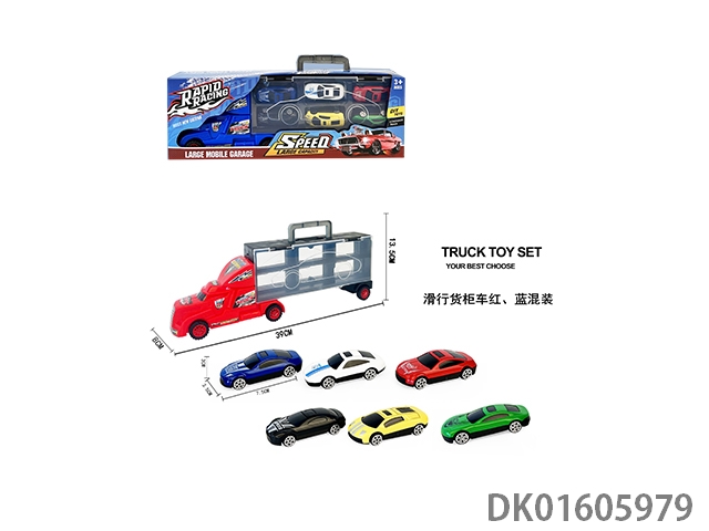 Handheld gift box sliding container truck with 6 sliding alloy sports cars