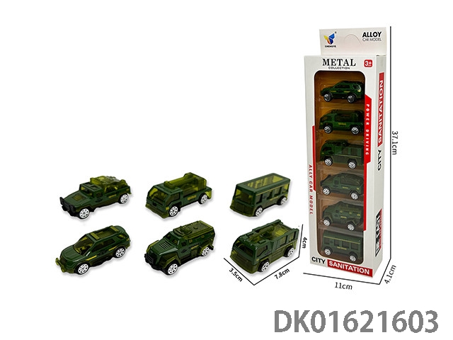1: 64 Sliding alloy military vehicle (6-pack)