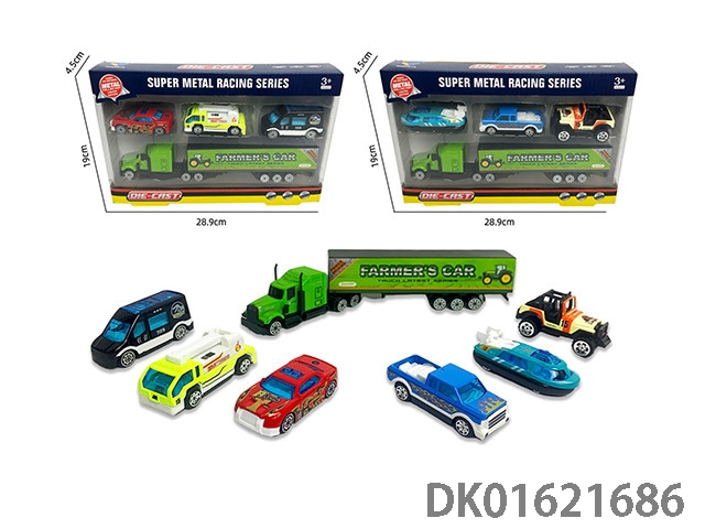 Alloy 1:64 city car sliding set with 3 and 1 container