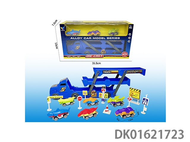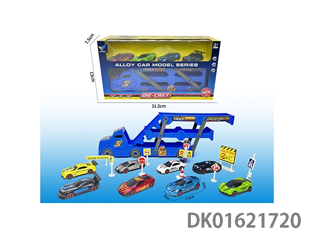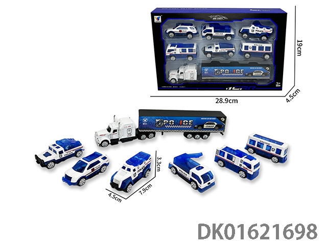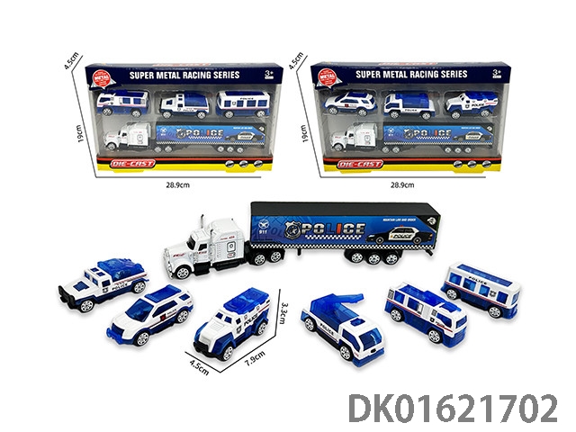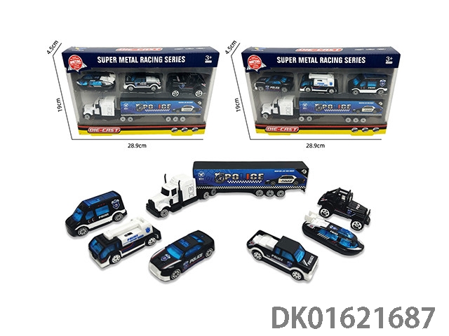 Alloy 1:64 police car taxiing set with 3 and 1 container