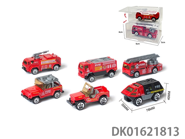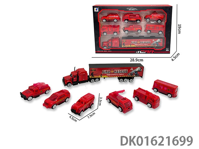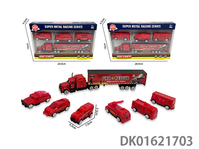 Alloy 1:64 fire truck sliding set of 3 and 1 container