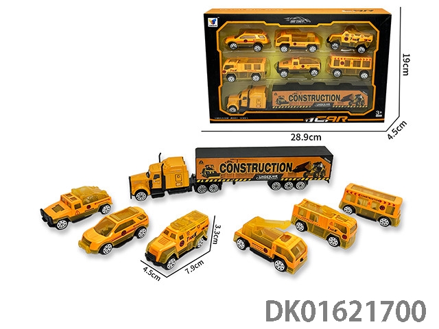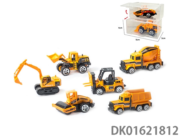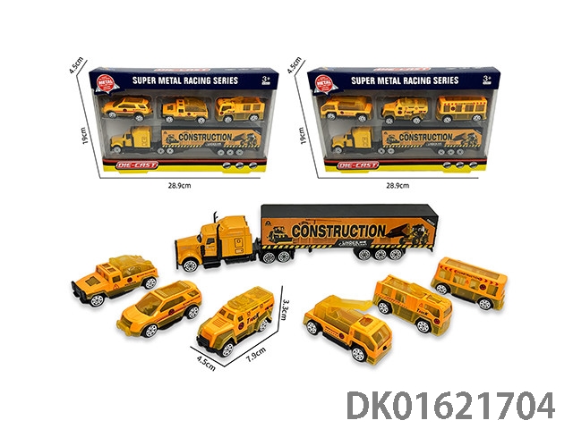Alloy 1:64 construction vehicle sliding set of 3 and 1 container