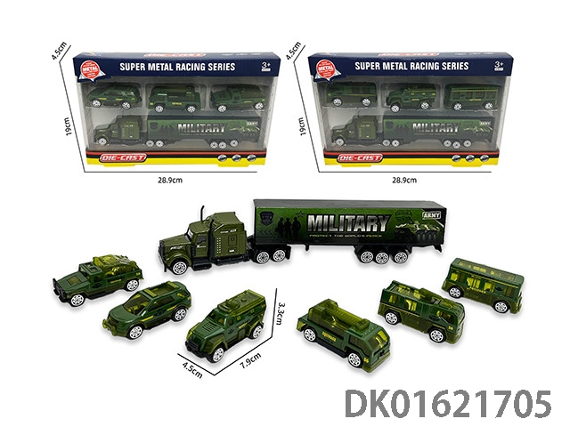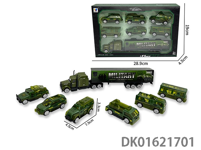 Alloy 1:64 military vehicle sliding set of 3 and 1 container
