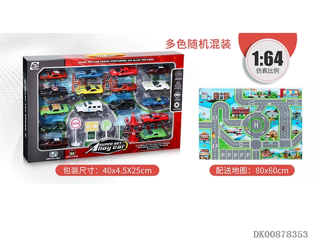 16Pcs alloy simulation vehicle, map and road sign (16 multi-color random mix)