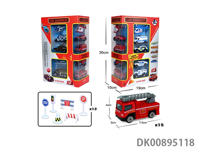 1: 64 Alloy sliding engineering vehicle and fire engine and police vehicle set