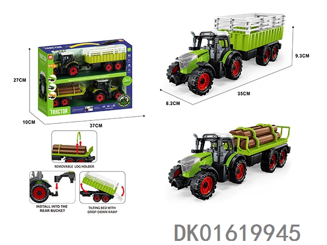 2 Lighting and sound effects, inertia belt clip for farmer’s front end, water filled rear bucket, and square bucket rear bucket