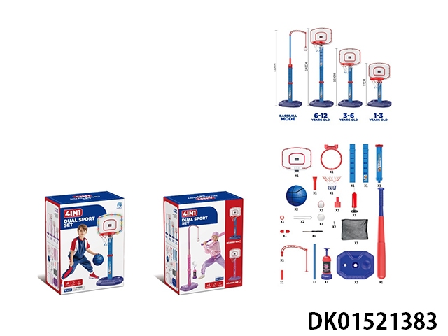 Basketball combination: 4 6.3cm pu balls and a small basketball frame