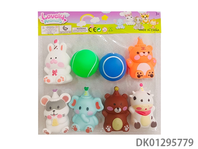 6 Animals, rabbits, tigers, cows, elephants, bears, mice, plus 2 toy balls