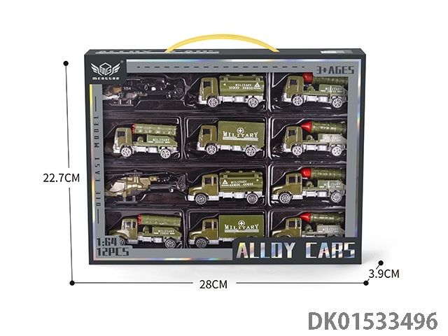 Alloy short headed military artillery vehicle and black helicopter set (6 units and military green small container truck)
