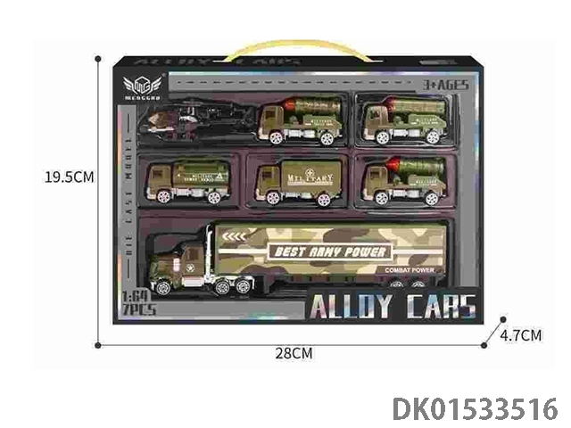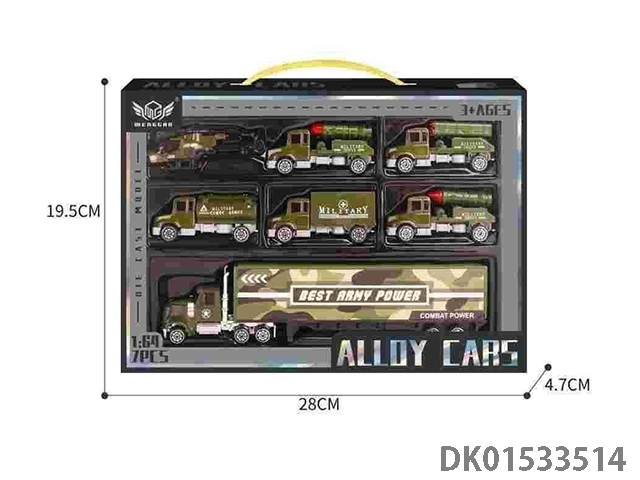 Alloy long headed military artillery vehicle and military green helicopter set (6 units and military green small container truck)
