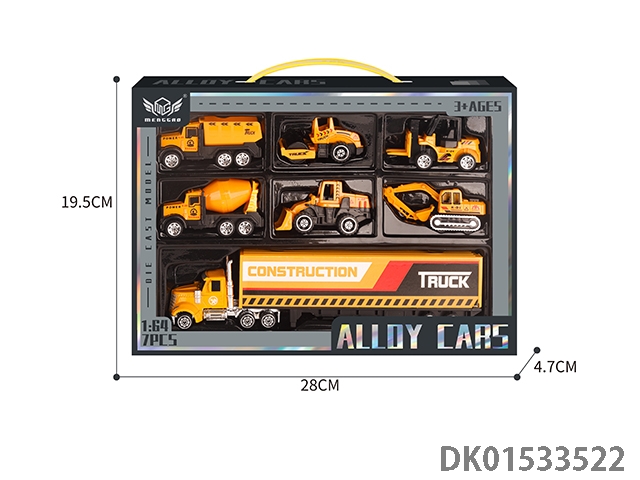 Alloy yellow engineering vehicle set (6 pieces and yellow small container truck)
