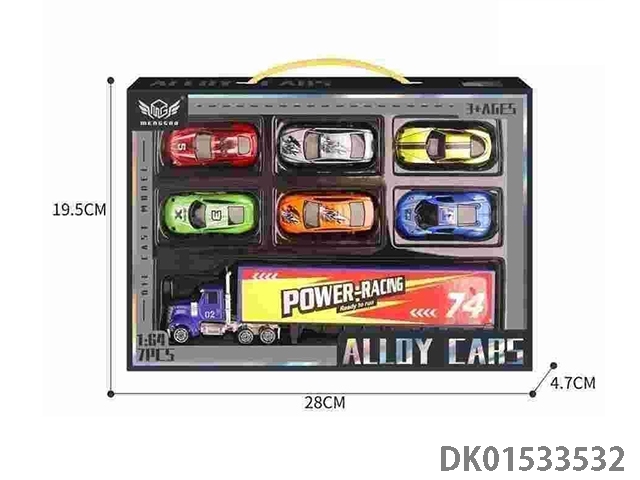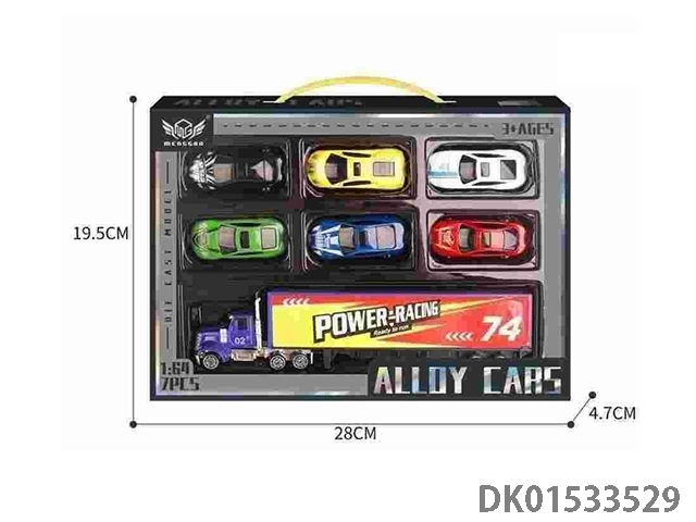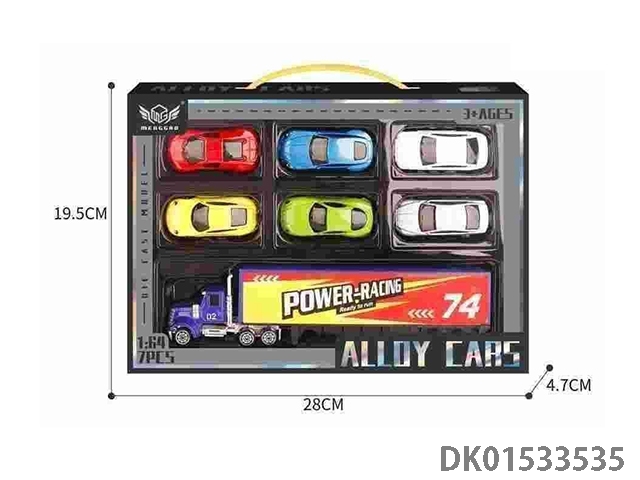 Alloy graffiti sports car set (6 pieces and blue small container truck)