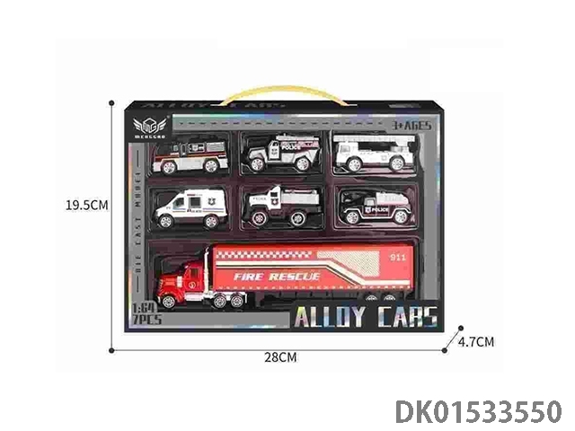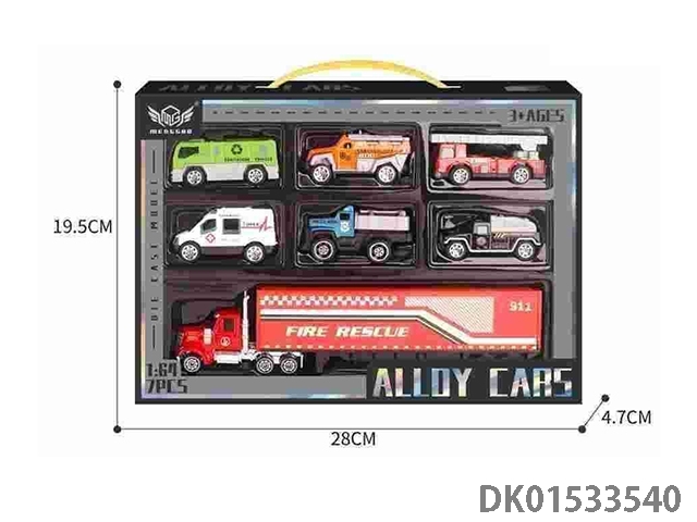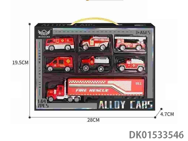 Alloy city six color firefighting set (6 pieces and red small container truck)