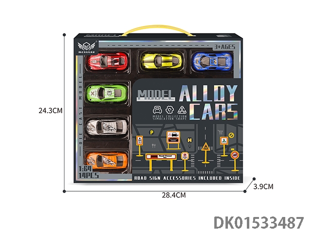 One no. 9 six color fire truck and one road sign each