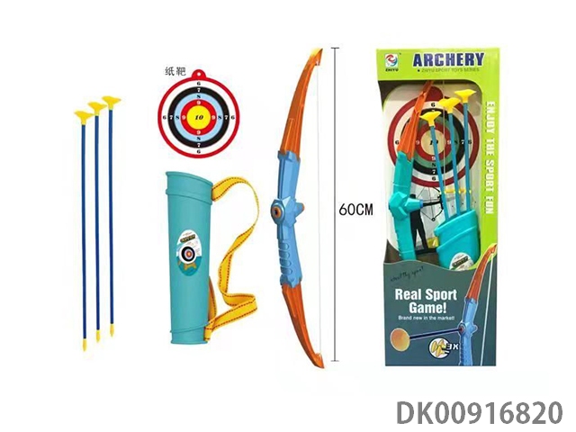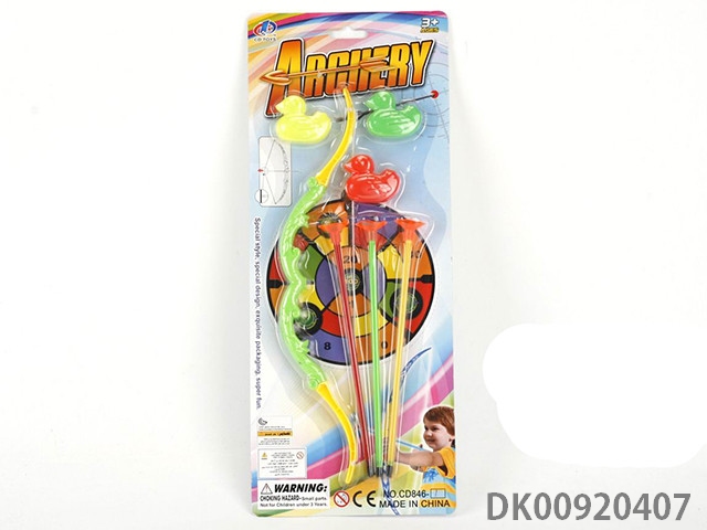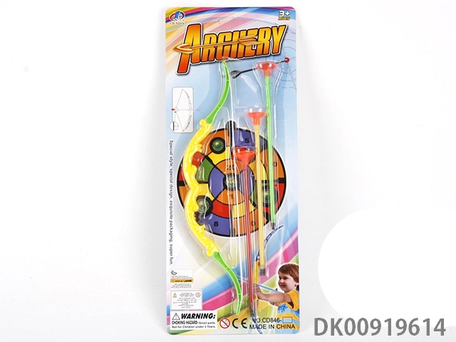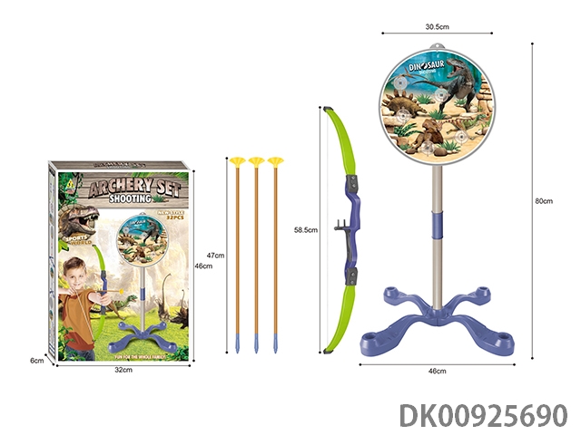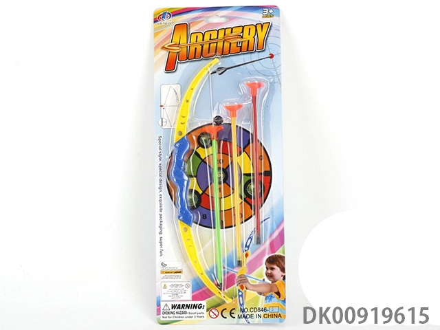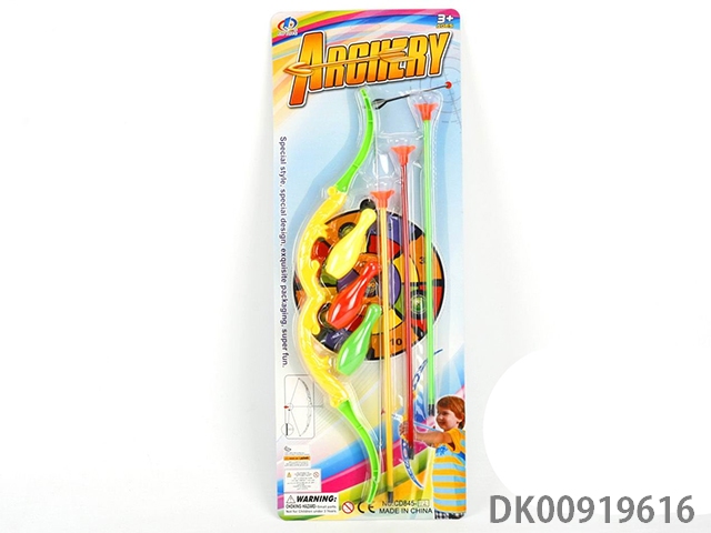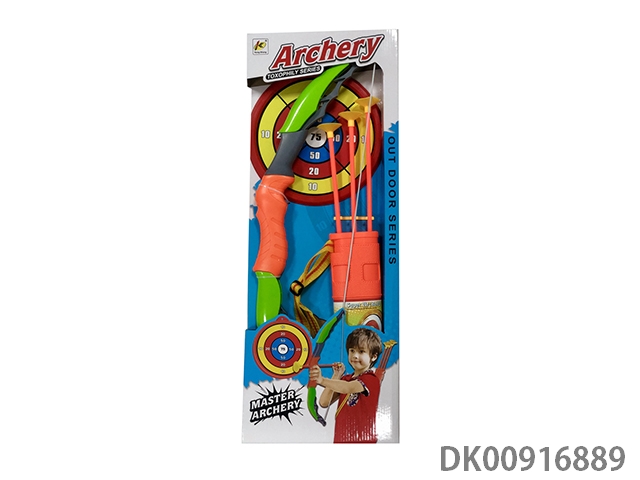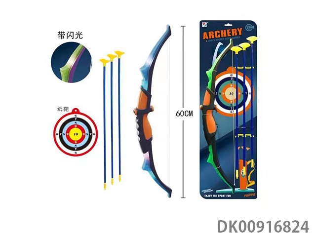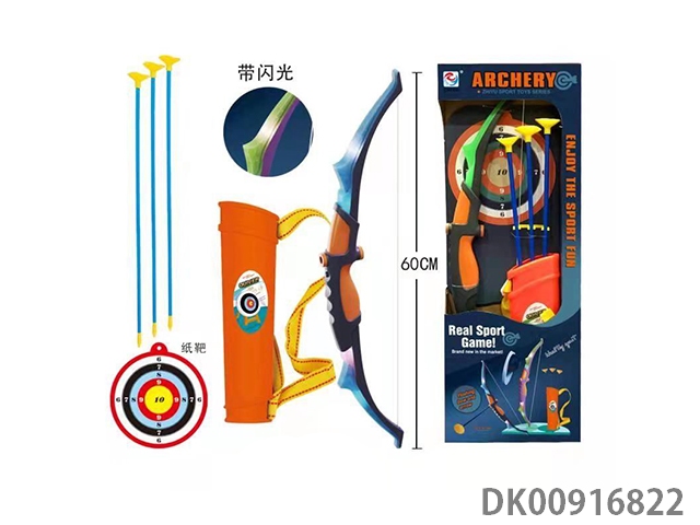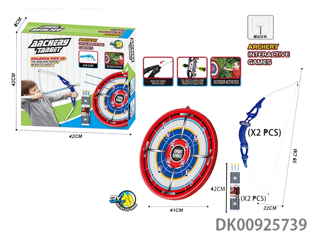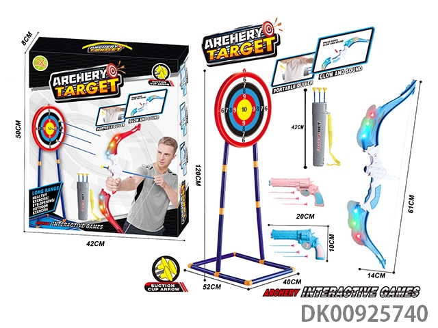 1.2M target frame, large illuminated bow and arrow suit, large target disc and 2 suction cup soft bullet guns