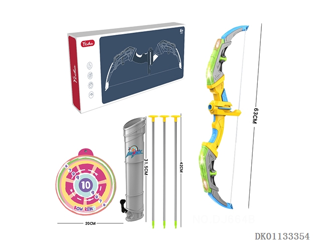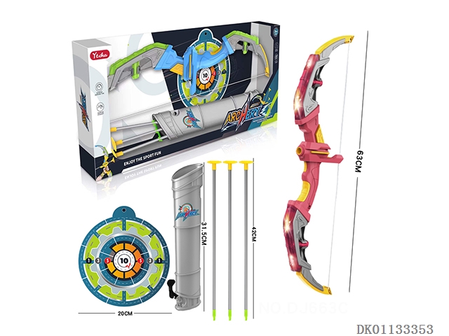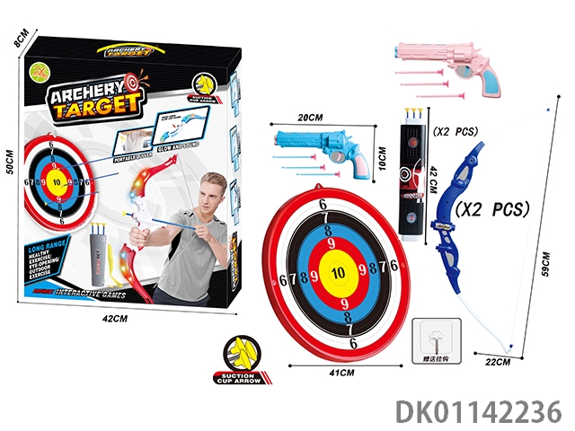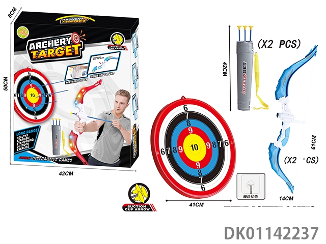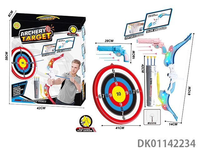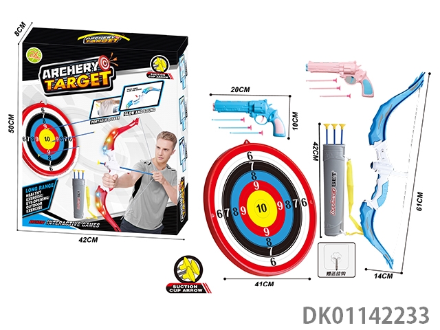 Large two unlit bow and arrow set with large target plate and hook