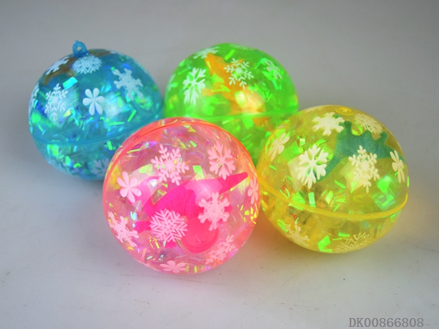 Tpu7.5cm snowflake spherical dinosaur flash elastic ball 12pcs/box