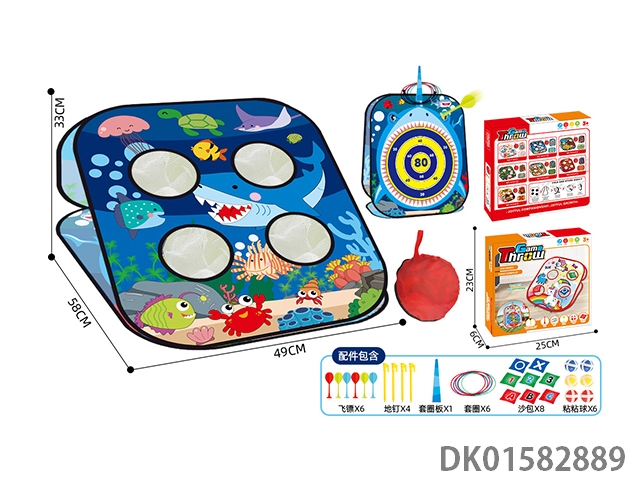 Five in one storage folding shark style sandbag flying tag throwing circle sticky ball sports toy