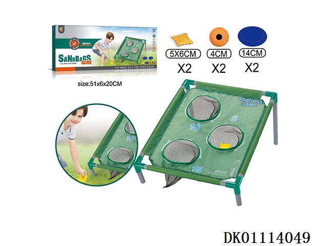 Throwing sandbags, bouncing balls, frisbees, and sandbags (3 in 1)