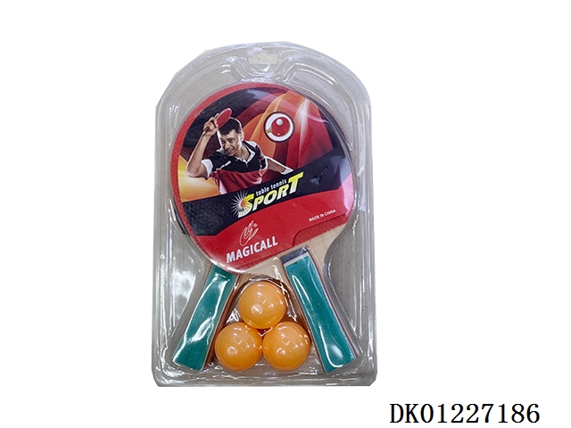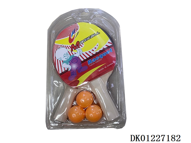 Table tennis racket without rubber and net, and 3 table tennis balls