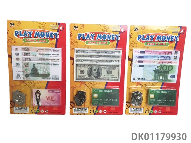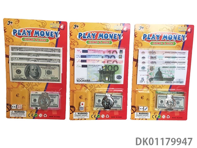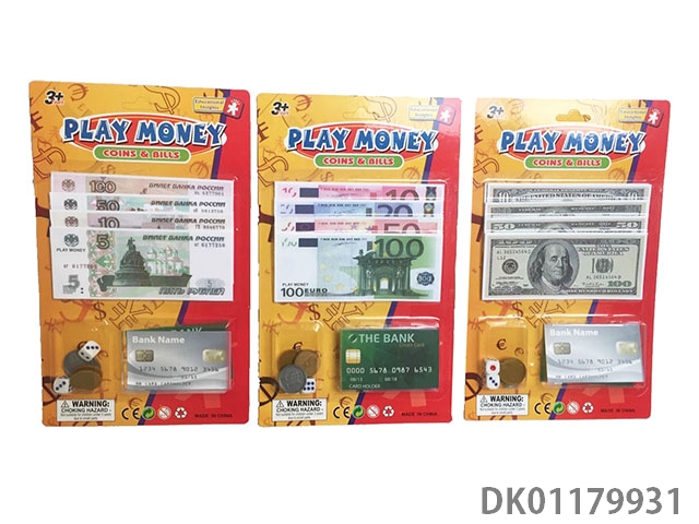 Banknote series (24 large banknotes, 4 bank cards, 4 round coins, and 2 dice)