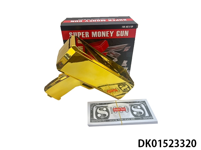 Bright light wealthy gold flat jet money gun and 100 banknotes