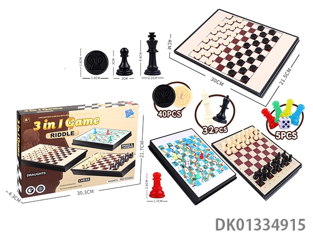 Chess, checkers, and snake chess (three in one magnetic)