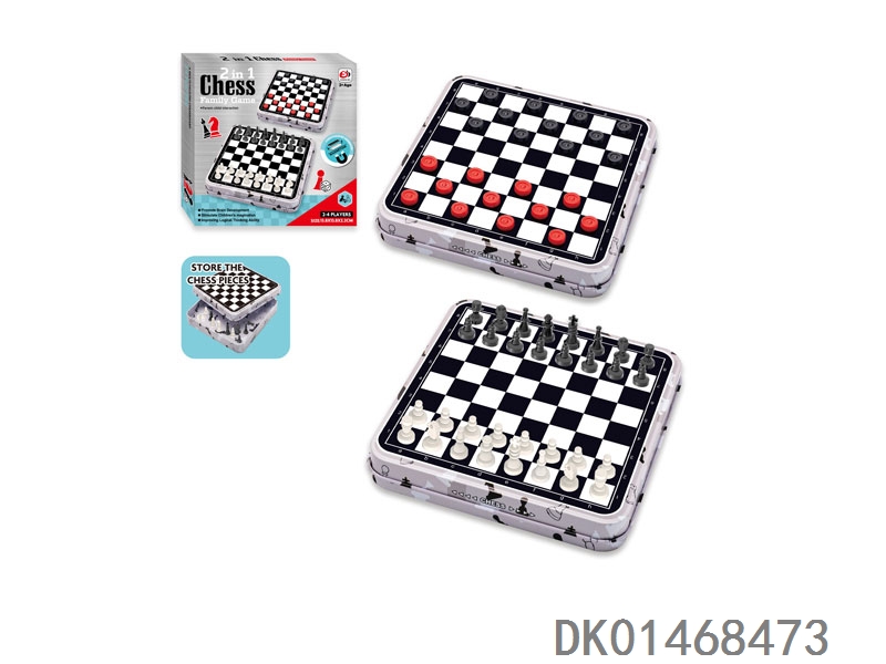 International/western checkers/flying/snake ladder chess/checkers 5-in-1 iron box