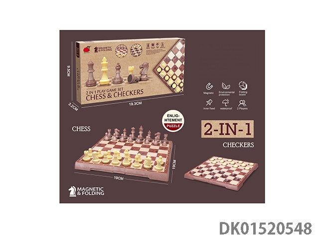 2-In-1 (folding magnetic wood grain chess/checkers)