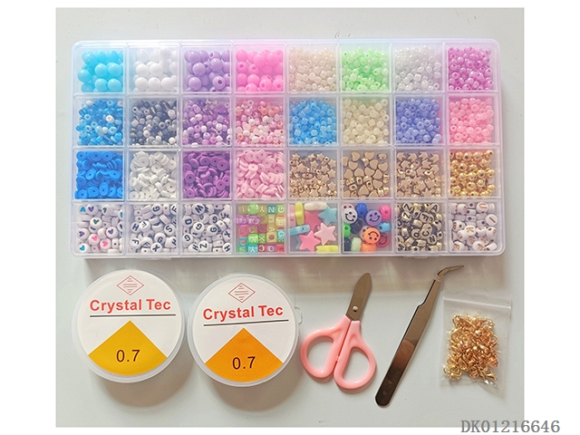 Rice beads, colored beads, barrel beads, soft clay beads, partition beads, and letter beads (32 cells)