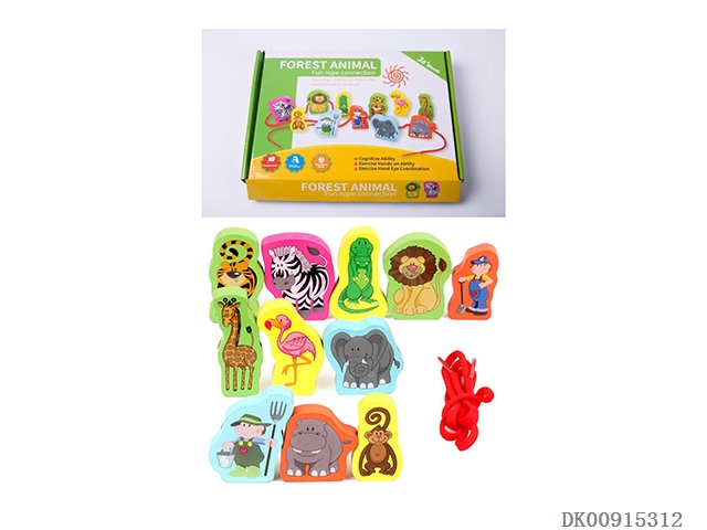 Wooden puzzle animal threading beads