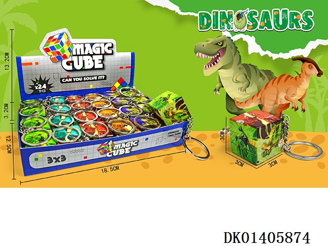 3Cm second order intelligence cube uv printed dinosaur with keychain 24pcs/box