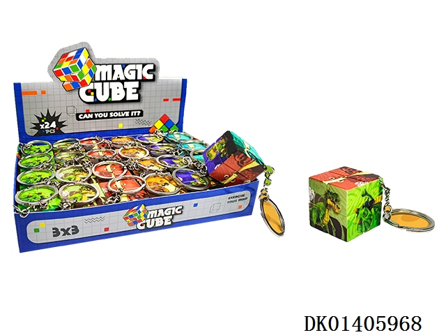 3Cm intelligence cube uv printed dinosaur with keychain 24pcs/box