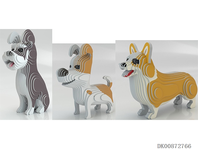 Three dimensional jigsaw puzzle of husky bagel and dachshund