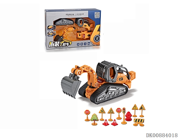 1: 32 Alloy excavator disassembly engineering vehicle with light and music (with traffic barrier accessories)