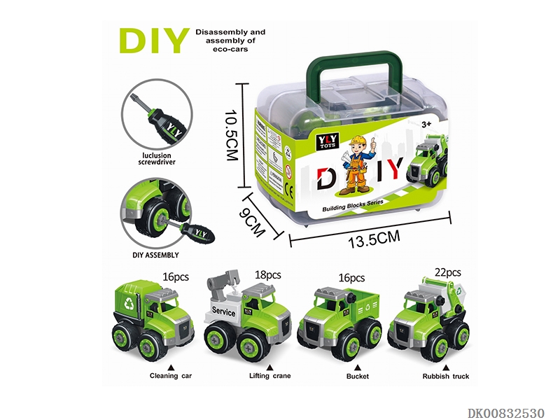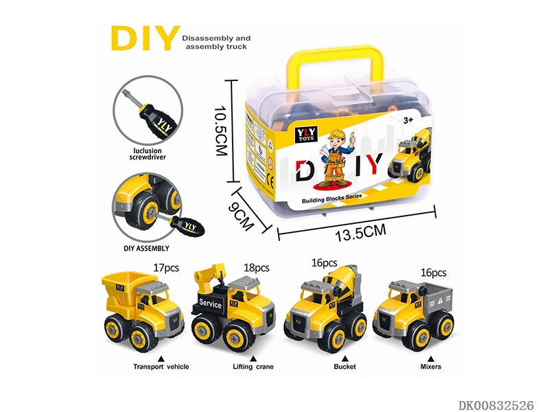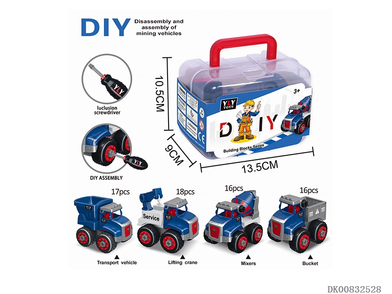 Diy disassembled engineering vehicle with 1 screw batch 4 mix